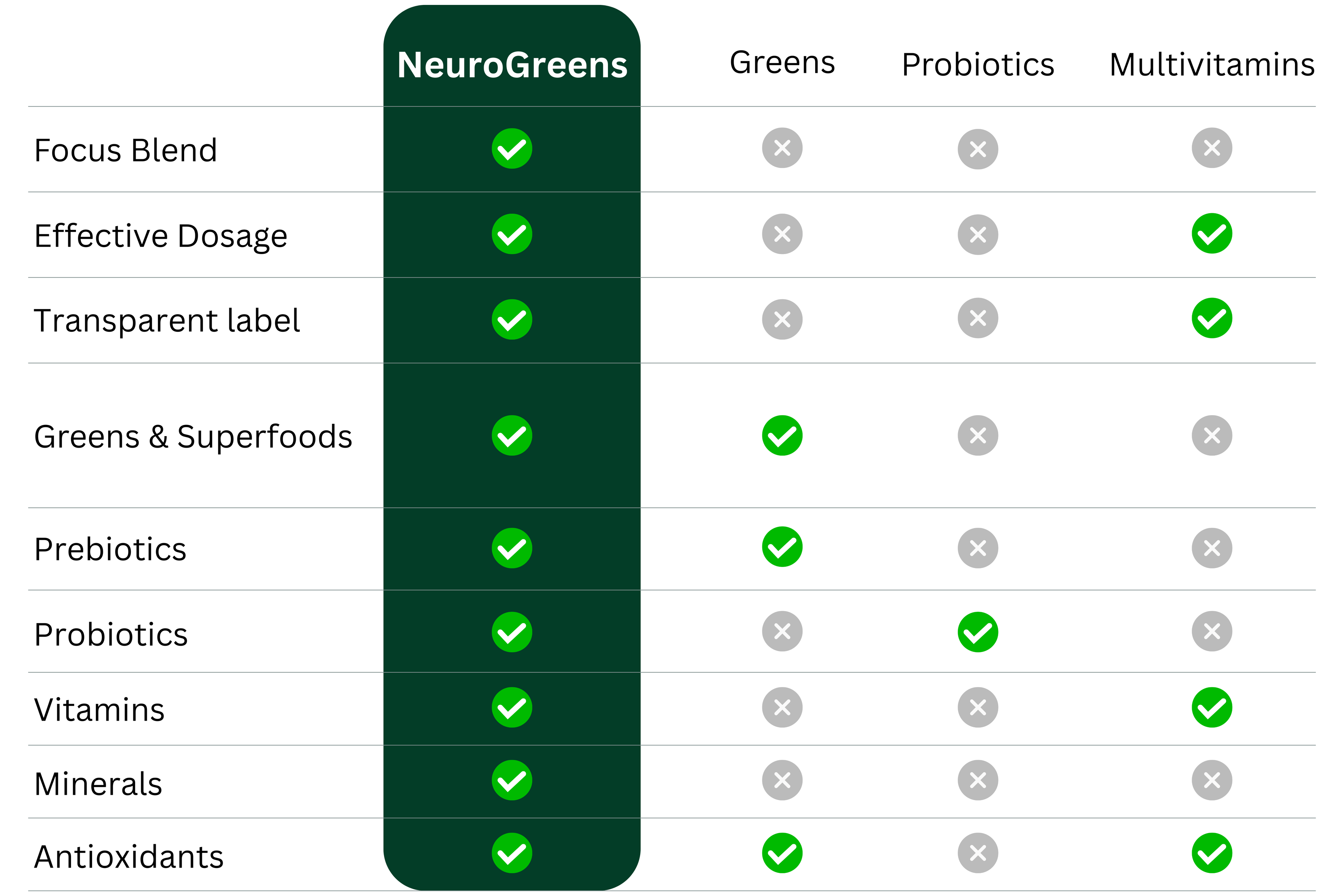 Modern life demands focus, but constant stimulation leaves many feeling foggy, distracted, and mentally drained. NeuroGreens helps you reclaim mental clarity so you can think sharply, stay on task, and perform with calm precision from morning to night.